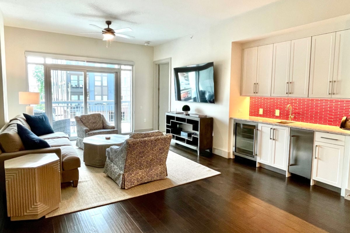 Guests staying at the condos have access to SkyGate Club. In addition to the indoor space, there are 14 outdoor seating areas for groups of 8 and 65” TV screens for each one. These areas are shaded to protect everyone from the elements and have views of Bryant-Denny Stadium and the Walk of Champions. Perfect for hanging out before, during, and after the game.
