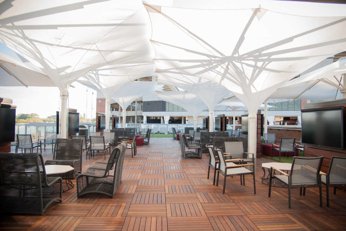 From the rooftop of the complex you can get 360 degree views of the stadium and take in all of the game day fun without the crowds.