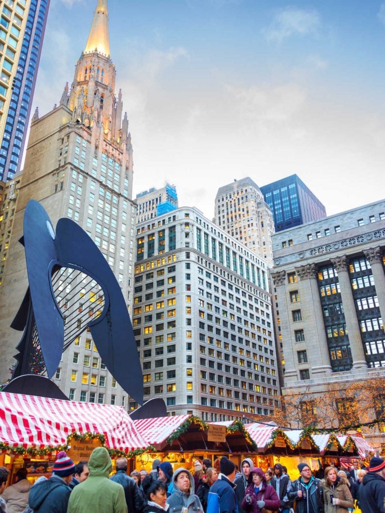 Don’t miss the Chicago holiday season highlight – the traditional German Christkindl Market in Daley Plaza. There’s a Käthe Wohlfahrt Christmas shop with hand-crafted ornaments, some glühwein, and even Santa and the Christkind. Be sure to go on weekdays early in the season or first thing in the morning to avoid crowds.