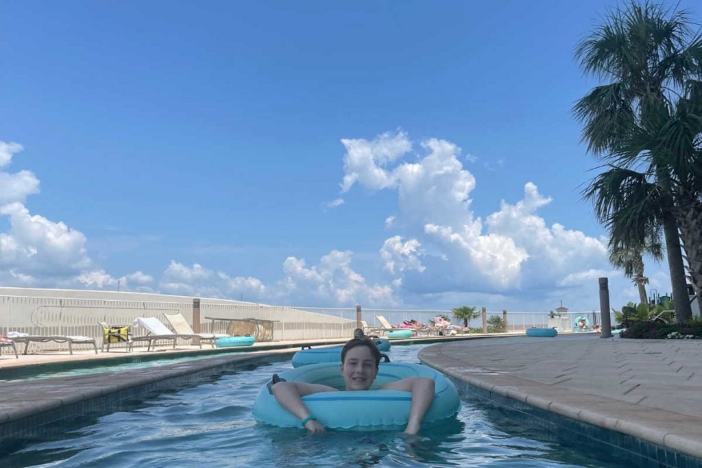 On property there are indoor and outdoor pools, a lazy river, games like giant chess and corn hole, and a playground for young kids. There are also tennis courts, beach chair rentals, and poolside cabanas.