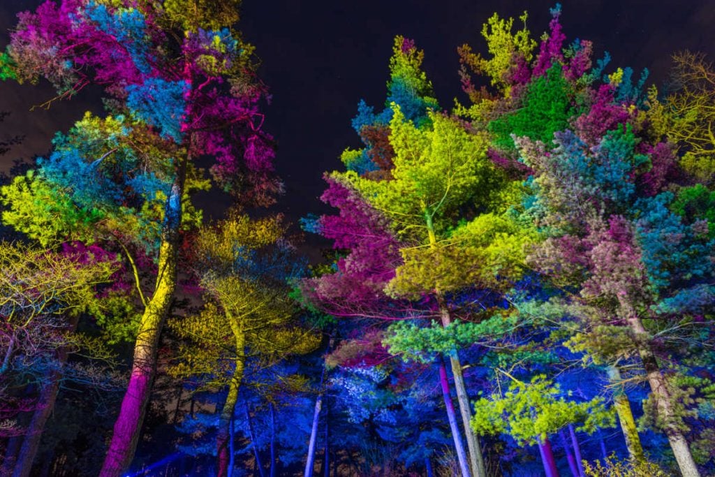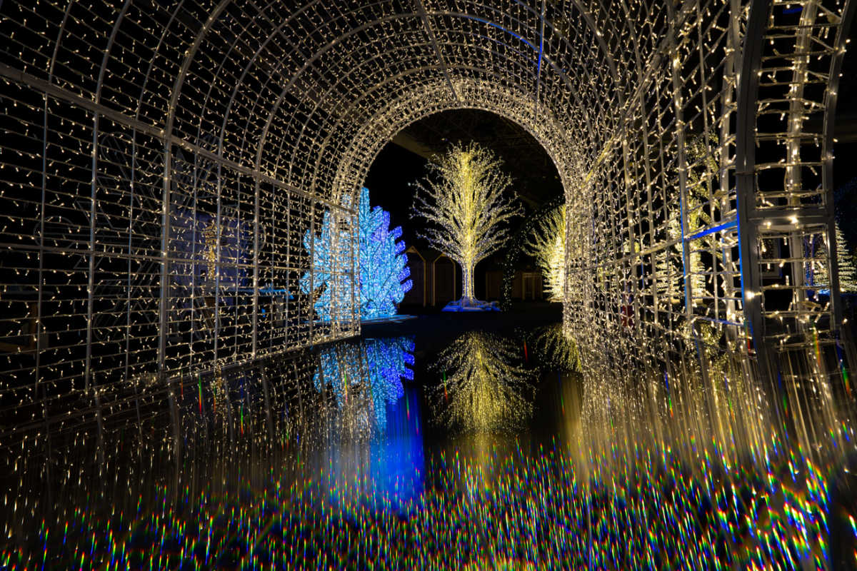 There are interactive lights, a tunnel of light, and a choir of singing trees. Some of our favorite displays include the luminous Winter Cathedral and a reimagined fire garden.